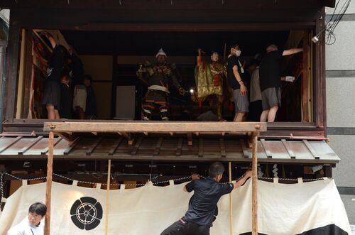 「六月中頃、囃子方の血が騒ぎはじめ、吉符入りの案内葉書が配達されると囃子方の気分は高揚する。そして迎える七月一日の吉符入り、午後四時に函谷鉾(かんこほこ)町会所に集合した囃子方は囃子の道具を準備し、揃いの浴衣に着替える。やがて太鼓のテンテ…